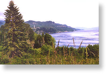 The process is to cut an area for the building of a road, and then put a logging road in place. Then a patch of 65-100 acres is cut. The logs are pulled out by a variety of methods - helicopters, skylines (which may stretch as much as 8,000 feet into an area), long lines, or long boom cranes called super snorkels. The logs are loaded onto trucks for transfer to one of four reloading areas, where an A frame crane picks up the logs, one truck load at a time, and deposits them on a railroad car. The cars are then moved twice a day to Beaver Cove for a sorting operation by lumber type, and then dumped in the water for towing down to mills along the island. The old-growth forests provide continuous belts throughout the land, and you can easily see the old timber, and the new. Lightning strikes take out some timber about 6-7 times per year, but generally these fire areas can be incorporated into the standard logging plans. It was certainly not the picture of "Paradise Destruction" that outfits like Greenpeace portray. It was a long day, and we got a lot done. Tomorrow we are up early and off to Beaver Cove for more on this story. The restaurant serves more than ample portions, and we are certainly pegged as the new folks in town. Everyone knows everyone else's business. It is after all, a lumber camp, with a total population of just under 800. The camping is great, the solitude is wondrous, the forest and wild life are beautiful, and the bugs are murder. I reek of Deep Woods Off. But in all fairness, they are not as bad as in upper BC last week. TV is pretty bad, and I have never been in a place where when you ask the car radio to scan to a new station, it just keeps on clocking through the bands, always repeating and never stopping. To bed. We can finish this tomorrow. July 2 Up early and off to the Mike Guadet's office. The restaurant here at the motel is interesting. They have one speed -- slow. I was the first one in at 6:03 AM, and it still took until 6:45 to get breakfast. To their credit, dinner was faster, but that was later.