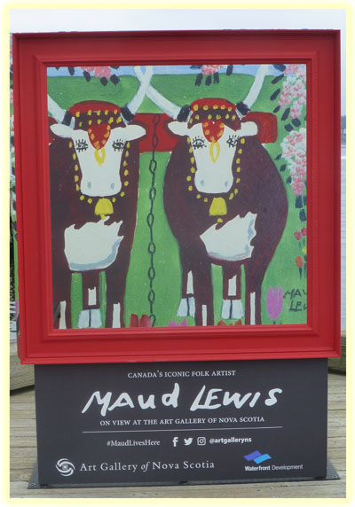 No stop in Nova Scotia would be complete without some reference to Canadian artist Maude Lewis. She was born in 1903 (died 1970), and started her artistic career hand painting Christmas cards. Her paintings really took off in the 1960's as a result of a review in the Toronto newspaper. Her bright colors and primitive style have made her a favorite.