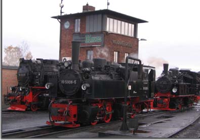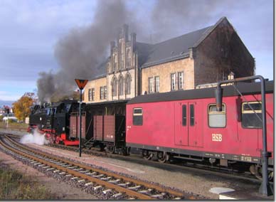 And we are right across the street from the Harz Schmalspur Bahnen: the Harz Narrow Gauge Railway. There are three lines here, about 140 kilometers in all. While the line is primarily know for its narrow gauge steam tank locomotives, they also have a full compliment of diesel and railcars as well. The Brocken line is all steam tank locos, some little tank mallets, and period coaches. We met with the staff and our handler, and will start shooting Wednesday. October 26