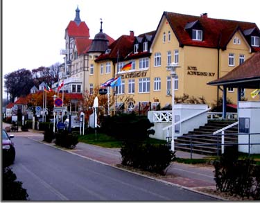 This line, which is operated by the bus company, offers regular daily steam service between Bad Doberan, through Heilengendamm, to the seaside resort of Kuhlungsborn. The line is 900mm, which translates to ½ inch less than the US narrow gauge of 36 inches. So the engines and cars are larger than what we have been seeing in the previous days. Kuhlungsborn is the main sea resort for Germany, and has hotel after hotel facing the Baltic.