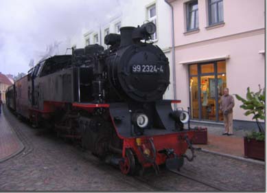 At the end of the line is Bad Doberan, where the train is noted for it’s street running. Both cars and people share with the train. We were told that in the summer months, when street bistos are popular, people just sit and dine, with the train only a meter or so away.