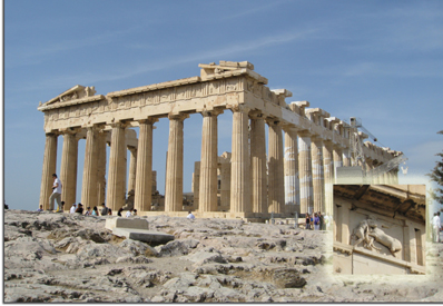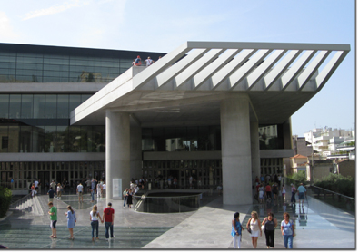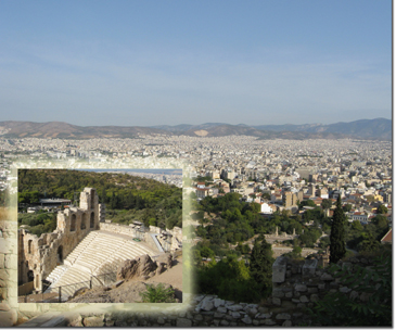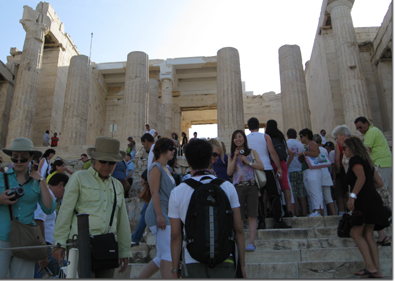 We met our guide, Mara, at the hotel, and were dropped off at the foot of the Acropolis. Then it was a long hike, again on slippery marble steps, to the top of the Acropolis, and the Parthenon. This was a light day, but there were still crowds at this, one of the world's most famous monuments.
