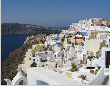 well as the more picturesque town of Oia (E-ah) is filled with white