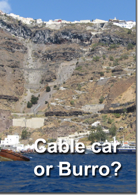 There are three ways to get to Fira from the port: walk up or down some 500 steps, ride a burro, or take a cable car. We all opted for the latter method. Tonight is the Captain’s Reception, which I’ll bet he just loves (“So who’s driving the boat?”) Tomorrow is our last stop in Greece – Rhodes.