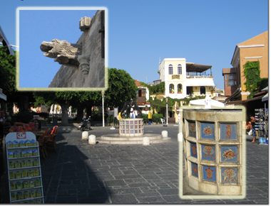 And after walking around for about 4 hours, ended up in a street café, just watching the people go past. There were plenty of little things to see, such as gargoyle rainspouts, tiles fountains, and imbedded stone reliefs. It was lovely to just sit and watch life go by.