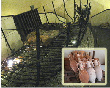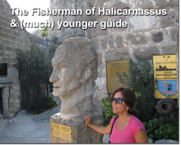 Our one visit today was to the castle, along with the Underwater Archeological Museum. It was to this castle that the Knights ended up after being forced from Smyrna in 1402. They stayed here until 1523, when Suleiman the Magnificent captured Rhodes, thus making their position here indefensible. But the big item was that this was the site of one of the seven ancient wonders, the tomb of King Mausolus. Built by his wife in 353 BC, this Mausoleum of Halicarnassus stood for better than 900 years before being destroyed in an earthquake. The town was also known for ship building and did a lively trade business. The waters around the area can be treacherous, and so shipwrecks abound. The prize of the museum was a tubby freighter (16m long, 5m beam) that was carrying what amounted to recycled glass. One of the divers who helped excavate the wreck gave us a tour, which proved quite interesting. I also learned why amphora are pointed; they stack easier that way and can absorb shock better.