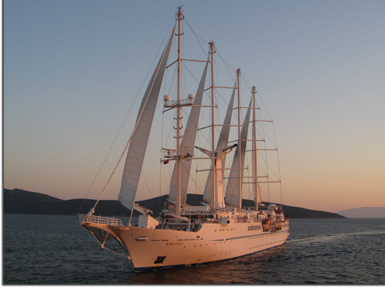 And to heighten the experience, our sister ship, the Wind Spirit, sailed around us before heading off to its next port. It was a really wonderful sight, as the setting sun caught the ship and cast it in a golden glow.