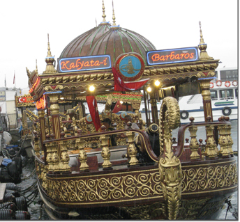 Sammi met us at the last port of call before the Black Sea (so we can say we have seen that body of water), and we headed for a local fish restaurant. While we all had sea bass, Barb, the beef eater, did not care for hers. She, like the rest of us, was fascinated with the lantern fish. I’ve seen photos, but never the real thing. My, what big teeth you have! And my, you certainly are ugly. We were told that these fish are very good to eat. I don't know. Hopefully, they don't serve it whole, on the plate! It was rather nice sitting under cover, listening to the hard rain, and watching the lightening on the Bosporus.