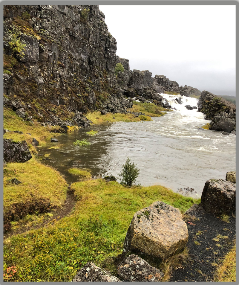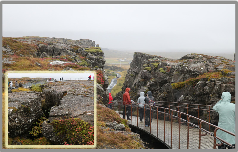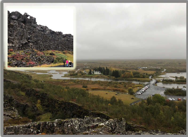We climbed into the lava encrusted hills to our first stop, the Thingvellir National Park which is a UNESCO Heritage site. Iceland straddles the North American and European tectonic plates and the park is the place to see prime examples of the rifts and valleys that occur as a result of the plate movement
