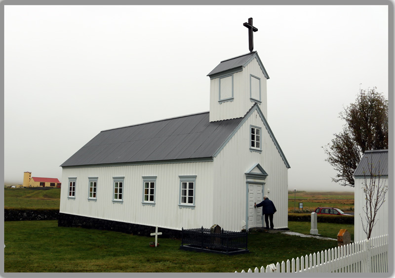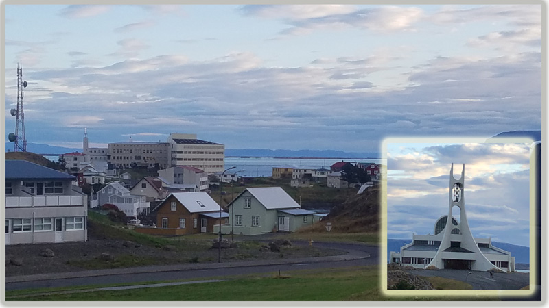 Stykkisholmur has a natural harbor, commercial fishing, and is a haven for summer homes for people from Reykjavik as it is only about 2 ½ hrs. north. The bay also has a lot of islands, so it can be quite a summer playground. We are lodged here for two nights. Dinner was at the hotel and I’m blowing off the local currency on drinks. A thousand kroner note may look like a lot, but doesn’t go very far. I talked to our driver, Gretar, who is quite interesting. He and Kristin, our guide, have been first class, very knowledgeable and fun to be with. BTW, guides and drivers refer to OAT Travel as “Old American Tourists.” September 24 Once again, we were greeted with more rain. Due to the deteriorating weather, the trip to the glacier was cancelled as it would have been too dangerous. By the way, did I mention that the water is all good to drink? Well, it is. The hot is pumped from underground with no heating necessary and is a little sulfurous, but the cold is the best I’ve tasted. Or not tasted. Any hoo.