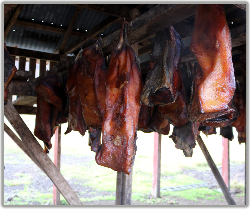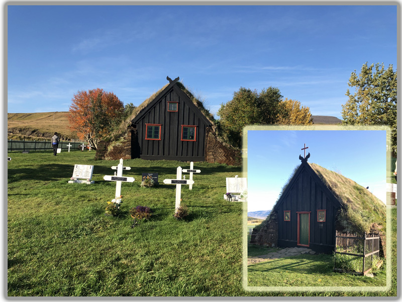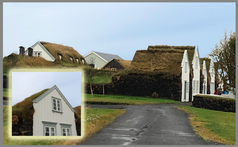 Sod or turf was cut and put over the logs. As these houses evolved, gables were added to make them appear more “European” with living quarters on the second floor and cooking, food processing and animal stables on the ground level. As cow will generate about 8 times the heat of a human, packing in a few on the ground level would be a good heat source. Cooking and minimal heating was done with dried animal dung, and later, some coal. Snooty, visiting European dignitaries said that the Icelander’s lived in the ground like rabbits, so living in these places became a mark of shame. As late as the early 20th century there were some 70,000 of these, but by the late 1940s most were gone. The one we visited is a preservation site.