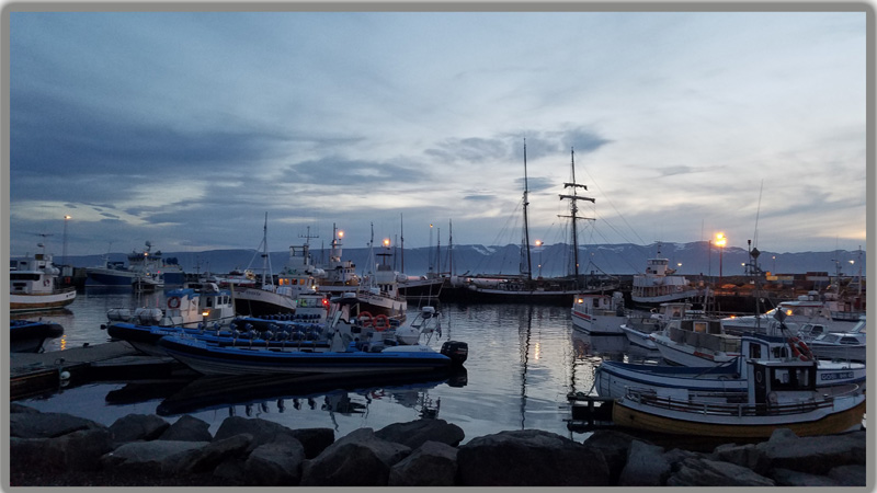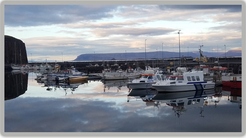 This is an evening view across the harbor here in Stykkisholmur. We split into two groups and pretty much took over the only two