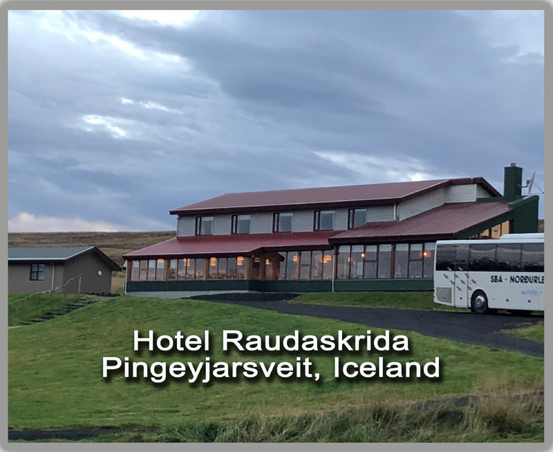 We headed out to our home for the next three nights, the Hotel Raudaskrida, a lovely country inn near Pingeyjarsveit. The rooms are comfy, the geothermal water is hot, and the food is excellent. As it is the end of the season, we seem to have the place to ourselves. A rowdy time was had at dinner. We have met some really nice people, in addition to reconnecting with our Yakima friends. September 21