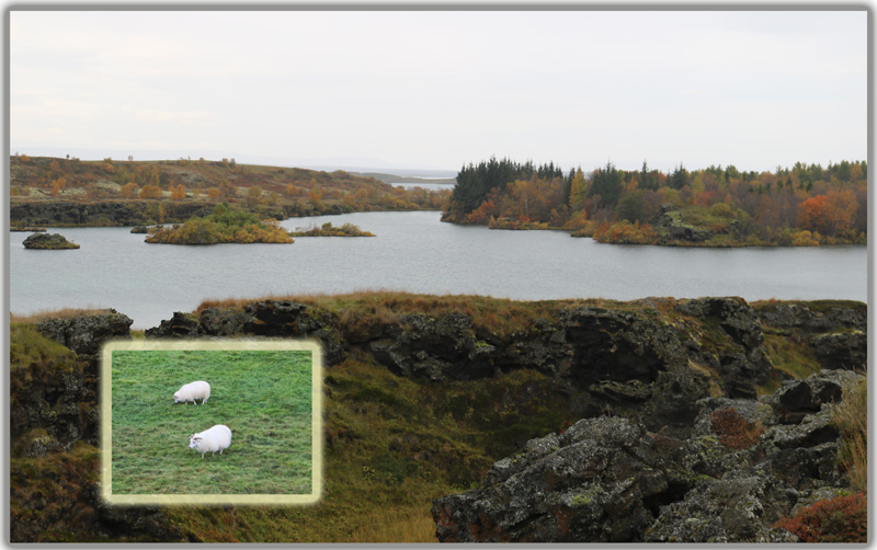 There are some amazing rock formations. We could see two big lakes, Alftafogur and Stakholstjorn. And sheep.