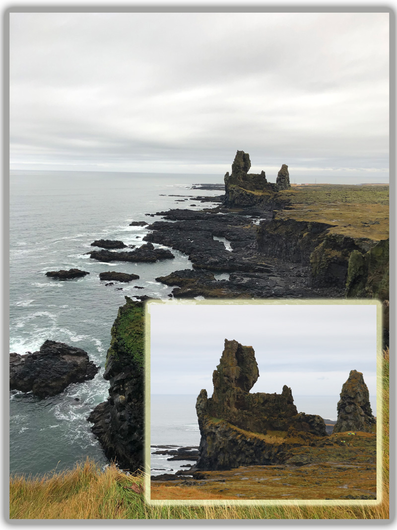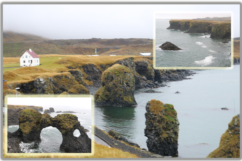 Just to toss in some levity, I got Kristin to sing “Wheels on the Bus” in Icelandic. Which you can view here. She has a two and half year old grandson, and so was quite familiar with the song. We stopped at the Black Beach at Djupalonssandur which was highlighted by more lava fields, and more cliffs along the shore. The beach sand consisted of smooth tiny black stones.