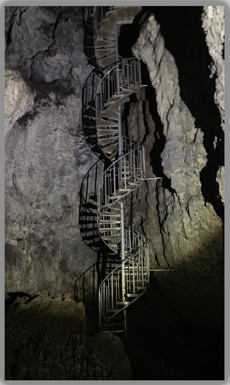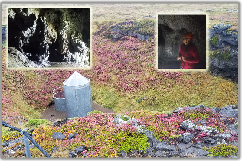 There were two levels, connected by spiral staircases that went down from the surface and then from level one to two. Level two was about 12 meters down, so think four stories. As it is a lava field, there are no traditional stalactites or stalagmites. The water and rock has no mineral content. So the whole thing was just rough walking, pitch black except for our helmet lights, and constant dripping. Still it was somewhat interesting. The only sign of any habitation were the old, old bones of an arctic fox.