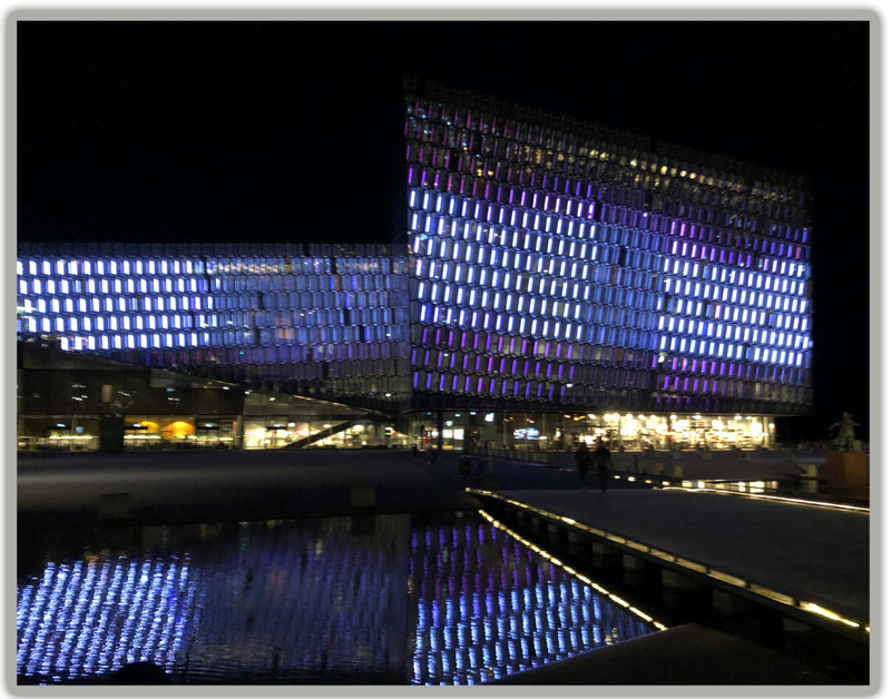 First on the agenda, a city tour with the delightful Tomas who was a very humorous fellow and had a great command of American English due to his Chicago father. I learned that all over Iceland there are basalt columns, created by geothermal activity. These two are located close to the hotel as a sort of symbol of the land. They are flanked by two geothermal pipes, which were quite warm to the touch.
