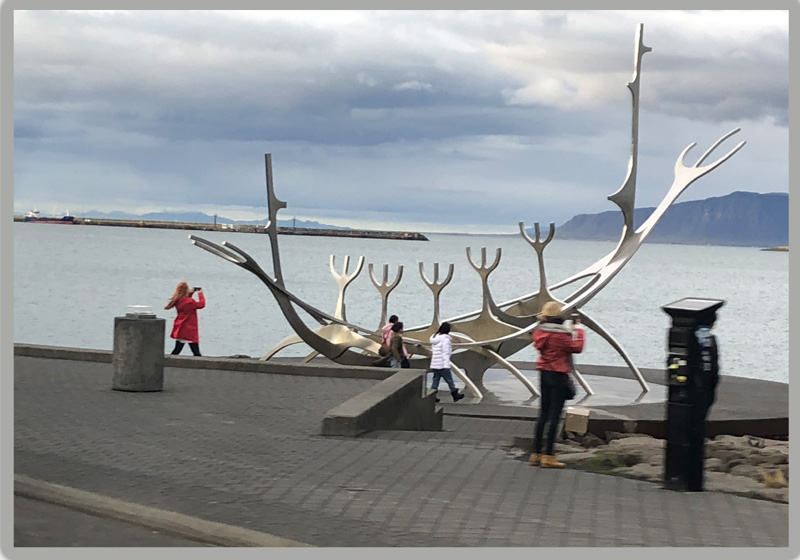 Then it was a short walk to the city square for a brief history of the island. Tradition holds that the place was discovered in early 800 AD by farmer Ingolfor Arnarson. He was escaping strife in what is now Denmark. Old Ingolfor could not take his house, but in order to maintain tradition took two big logs which were part of the foundation. The house had been in the family for generations and the foundation logs would carry forward that tradition. He came across Iceland, and dumped the logs in the water, thinking that the gods would show him the way. They floated into Reykjavik Bay, which literally means “Smokey Bay” – Reykja = smoky, Vik = bay. There wasn’t much to burn, so the smoke was probably steam from the thermal pools of water around the area. The whole place was settled by 874. How do people know this exact date? It is because every person who came into the country was recorded in The Book of Settlements. This has been a huge trove of historical information.