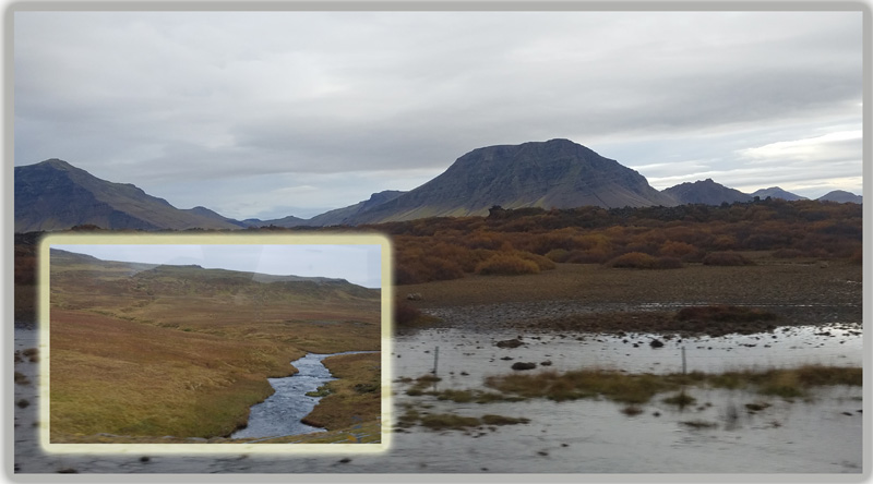 Readers Note: The names of Iceland locations are, well, pretty difficult to pronounce. The language is a mixture of Norse, Danish and Swedish, and supposedly one of the most difficult to learn. So if you want an exercise in tongue twisting, have at it. The video files are of low resolution and are in AVI format. They must be downloaded and then played. I could have embedded them, but then you have to "Allow Blocked Content" and they play continuously, which I find dreadfully annoying. This way, if you want a video clip, download and play. Otherwise. skip it. September 17/18 We boarded our Iceland air flight to Reykjavik around 11 PM local, and much to our delight, found a sparsely loaded cabin. In fact, each passenger had an entire row to themselves. When was the last time THAT happened. So it was a good excuse to sleep the flight away. We found out later that Icelandair hauls a great deal of cargo, and we may have just lucked out in the weight and balance department. It was an uneventful flight and we landed on time at Keflavik, which is out on the peninsula tip, about a half hour ride from Reykjavik. The weather was grey with rain. We did not know that this was going to be the norm for pretty much the entire trip. Our